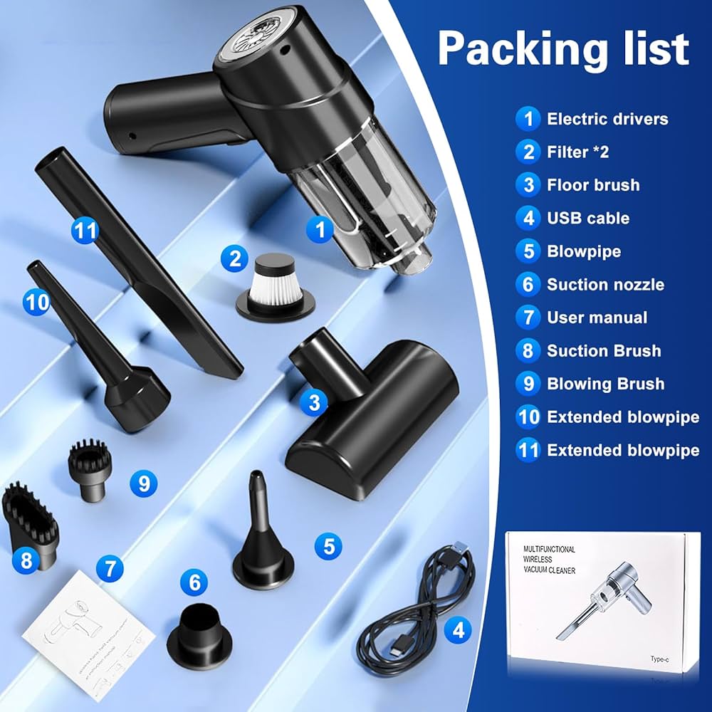 Introducing the 3-in-1 Portable Vacuum Cleaner + Air Duster, designed for powerful, fast and easy cleaning.